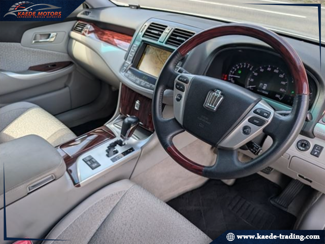 The 2010 Toyota Crown Royal Saloon 3.0 is a Japanese-market luxury sedan featuring a 3.0L V6 engine, offering a comfortable and quiet ride with generous cabin space, advanced luxury features, and traditional, elegant styling. This model provides refined amenities like power-adjustable seats, dual-zone climate control, and a sophisticated interior with wood grain accents, designed to provide a seamless, high-quality driving experience.